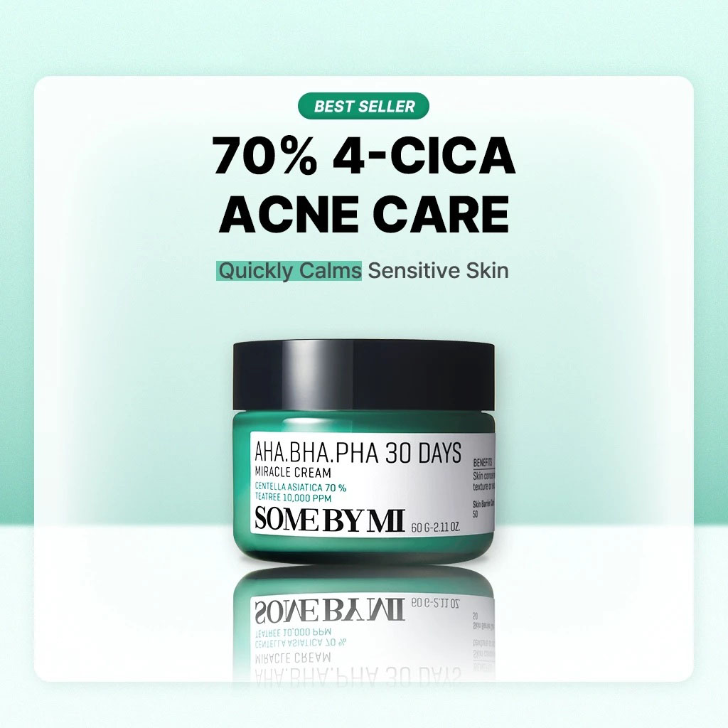 - Kem dưỡng trị mụn Some By Mi AHA-BHA-PHA 30 Days Miracle Cream giúp tăng cường sức mạnh của “hàng rào” bảo vệ da, tái tạo da, làm dịu da, loại bỏ tế bào chết.